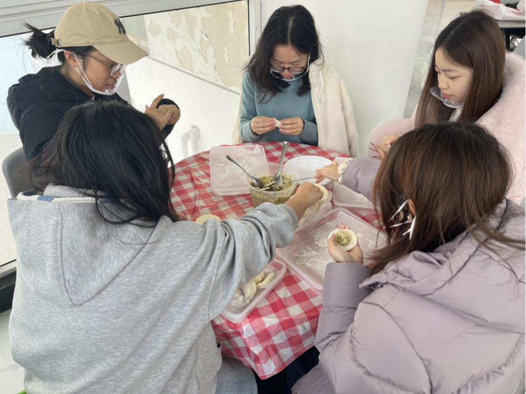 “冬至包饺子”这一习俗源自“医圣”张仲景以“祛寒娇耳汤”防治冻疮的传说,包裹着抵御严寒、期盼团圆的文化寓意。19日上午,西苑食堂中,同学们组成五人小组,协作完成三十个完整饺子,在填馅、捏合的分工配合中,实践了传统饮食制作,也为后续的团队协作奠定了默契基础。